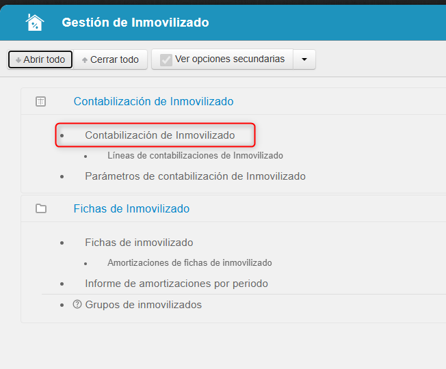 Al activar esta opción, el estado de la línea pasa de pendiente a amortizada, el importe se incorpora al acumulado de amortización, pero no se genera ningún asiento contable asociado a dicha amortización.