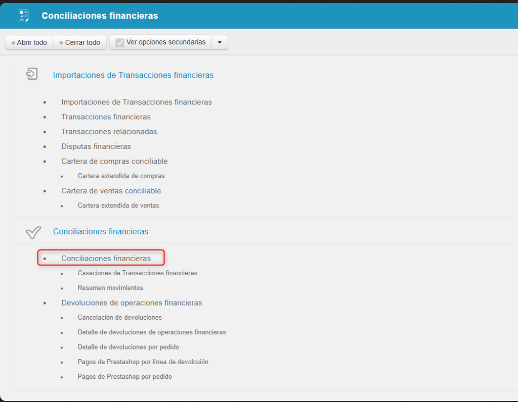 - Reconciliar transacción: volver a analizar el movimiento bancario aplicando de nuevo las reglas de conciliación. Esta opción es especialmente útil si, al crear la conciliación, faltaba alguna cartera y el movimiento aparecía como “Faltan reglas”. Una vez creada la cartera correspondiente, al usar esta opción el programa podrá conciliar el movimiento con dicha cartera.